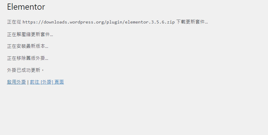 確定之後,外掛就會重新安裝,記得安裝完畢後要啟動外掛。